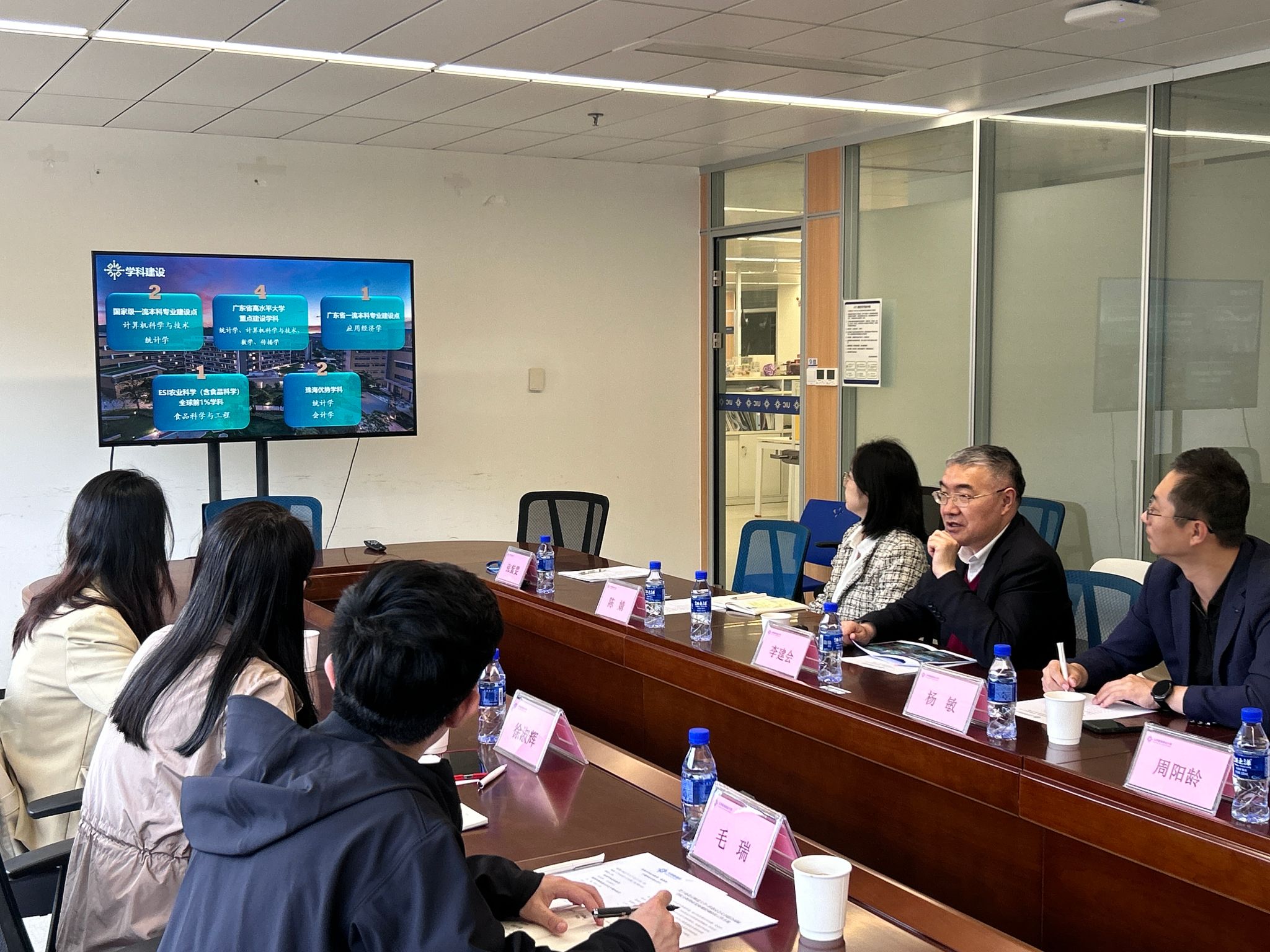 调研座谈会上,李建会教授详细介绍了BNBU的科研发展情况,围绕学科建设、广东省高水平大学建设计划、研究型硕博培养、科研平台建设以及粤港高校“1+1+1”联合资助计划项目等方面展开。同时展示了学校在产学研合作、科研基金申请以及科研成果转化等方面取得的显著成果。