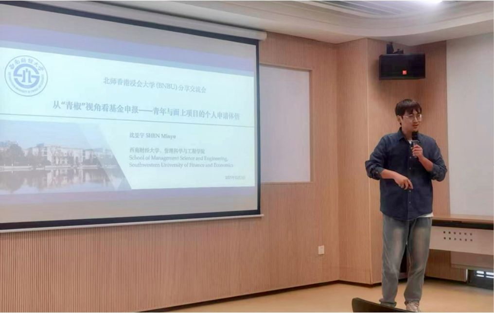 12月3日下午,首场讲座拉开帷幕。西南财经大学的沈旻宇博士为教师们分享了作为一位年轻学者在国自然基金申请方面的心得。沈博士以个人的一份自然科学基金申请书为实例,从申请书写作的时间安排、选题策略、写作要点到内容构建,进行了多维度、深层次的细致讲解。他强调选题需紧跟科研前沿,紧密结合实际需求,同时注重创新性与可行性;写作上则需逻辑清晰、层次分明,合理运用图表辅助说明,以减轻评审专家的阅读负担。互动环节中,沈博士针对青年学者提出的诸多具体问题,如供图要求、文献引用比例、研究内容篇幅等,均给予了专业、细致的解答。