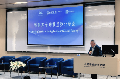 随后,副校长(研究和拓展)潘建新教授发表讲话。他首先提到,今年是北师香港浸会大学建校20周年,学校已经在科学研究、学科建设、人才培养和国际化办学等方面取得了显著进展,逐步探索出一条研究型博雅大学的发展之路。谈及学校科研工作时,他指出今年科研发展顺利,多项重要项目申报已获得立项。同时强调申请政府科研基金对于学校科研水平的提升和学术影响力的扩大具有重要意义。学校将推出更多举措,以提升项目申报质量。具体包括:为青年教师组织一对多获一对一的项目申报专家指导、为外籍教师的项目申报材料提供专业的翻译支持;同时鼓励各学院邀请在项目申报上有经验的校内外专家,组织专题讲座或经验分享会等方式进行经验交流。