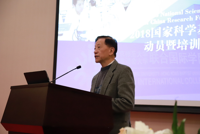 教务长、科研处长李建会教授介绍了我校近年来科研工作的进展,以及下一步的工作计划和发展设想。李教授强调要把国家基金项目申报作为学科建设、团队建设、人才培养的重要抓手,早谋划、早动员、早布局。教师承担国家基金与教师自身成长、学生成长息息相关,希望全校上下要在营造积极的申报氛围;各位学部领导、各位教学中心主任、各位教师要积极投入到国家科学基金的组织和申报活动中,为UIC的科研工作再创佳绩,为UIC学科发展和人才培养质量的进一步提高贡献力量。